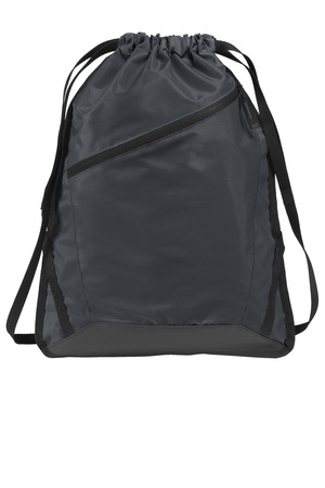 An asymmetrical front zippered pocket keeps small items secure in this cinch pack that can double as a lightweight backpack with its adjustable web straps.